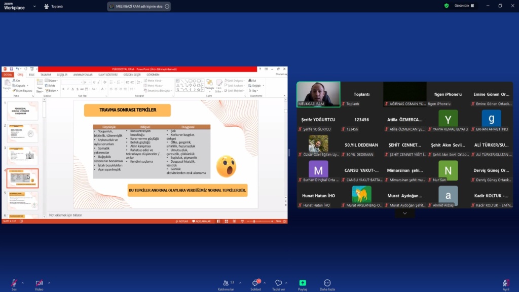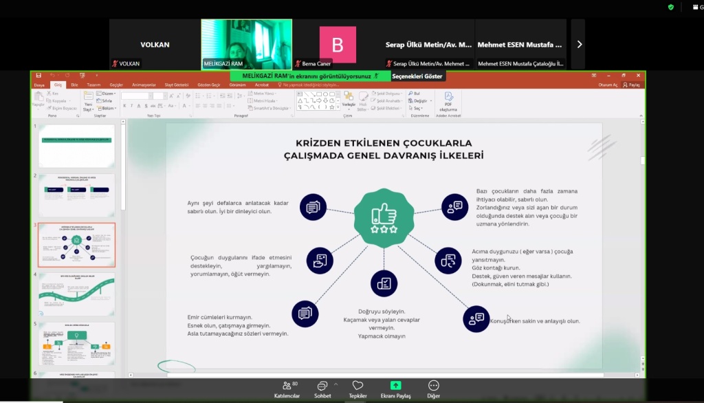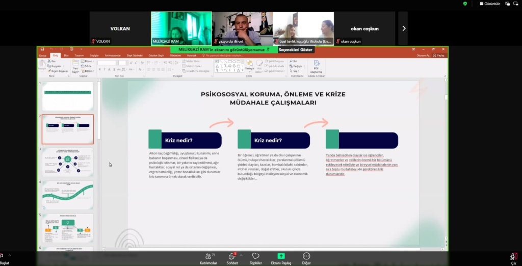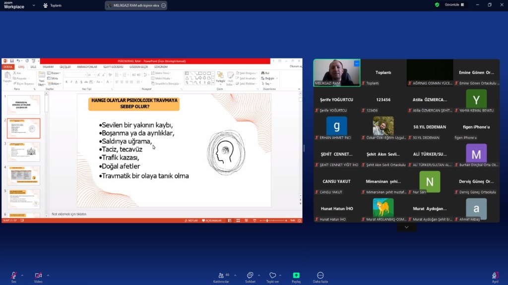 "Zorlayıcı Yaşam Olayları Sonrası Psikososyal Destek Süreci" hakkında İdareci ve Psikolojik Danışmanlara online olarak eğitim gerçekleştirildi.